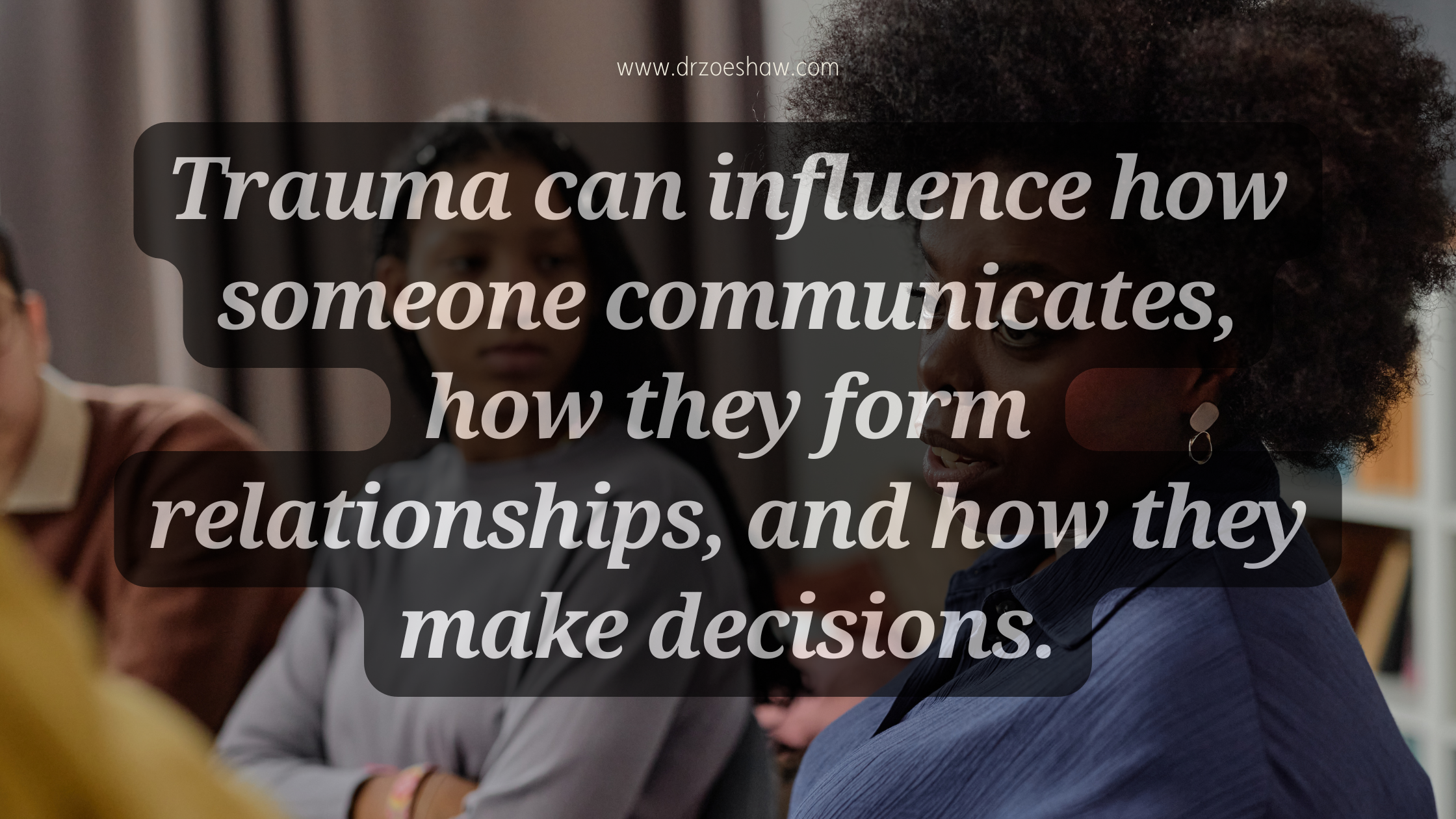 A major challenge with trauma is that it involves both what happened and how a person interpreted their own response. Many people look back at a traumatic moment and replay what they did or did not do. How you deal with trauma is also just as important.