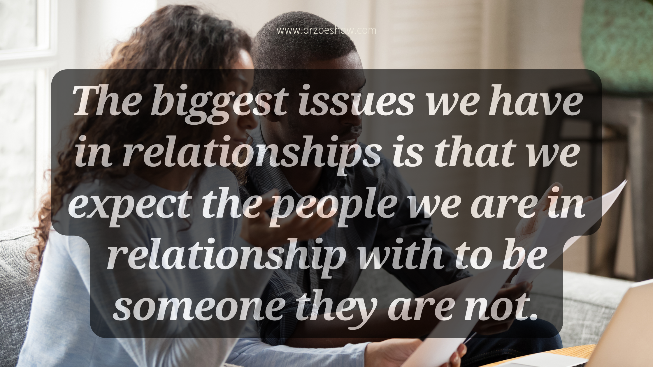The biggest issues we have in relationships is that we expect the people we are in relationship with to be someone they are not.